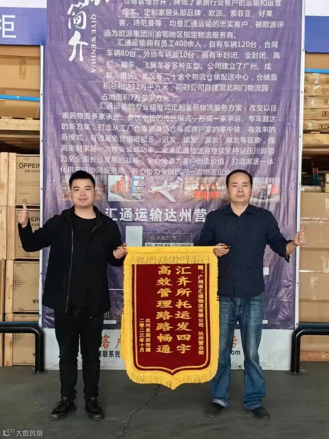 此次获得锦旗的有汇通总部1面,达州营业部1面,龙泉营业部2面,重庆营业部2面,双流基地仓1面。