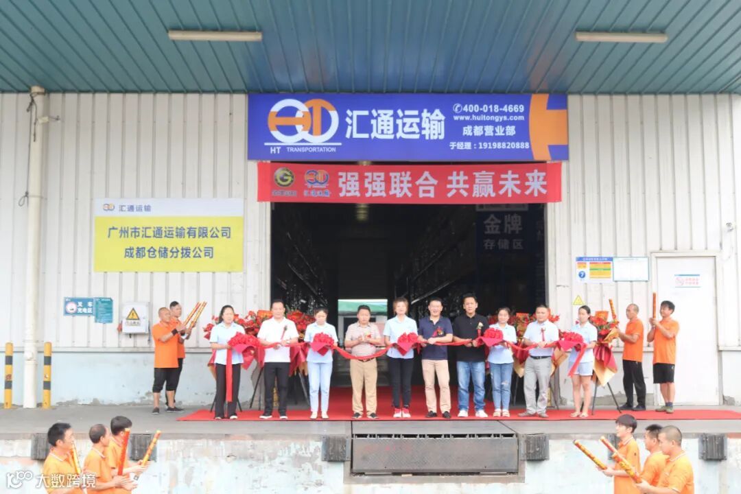 强强联合,携手共赢,陈志杰(易居总经理)、刘霁伟(金牌成都分公司总经理)、李新(金牌营销总)、张强(金牌成都分公司副总)与汇通运输董事长王城、总经理陈静锋共同出席剪彩仪式,共同启动了金牌-汇通成都干仓配。