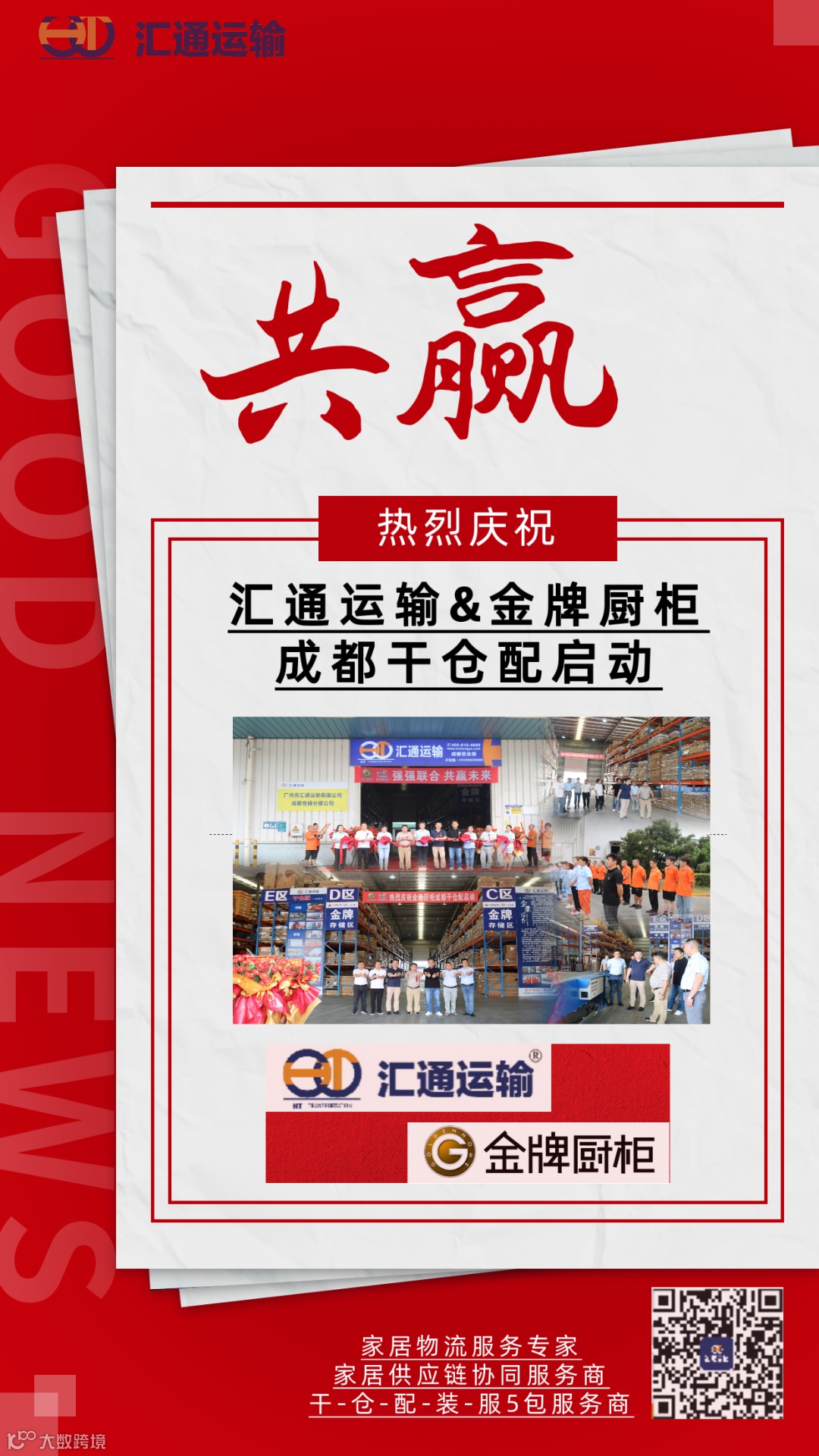 8月28日13时38分,金牌厨柜家居科技股份有限公司与广州汇通运输有限公司在成都市龙泉驿区举行金牌成都干仓配战略合作项目启动仪式,标志着双方在未来将通过家居物流干仓配一体化机制,共同建设“金牌厨柜标杆仓”。
