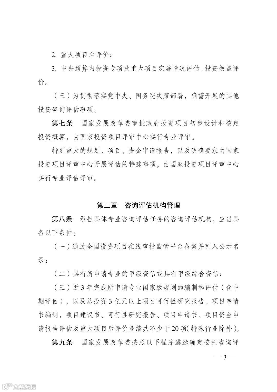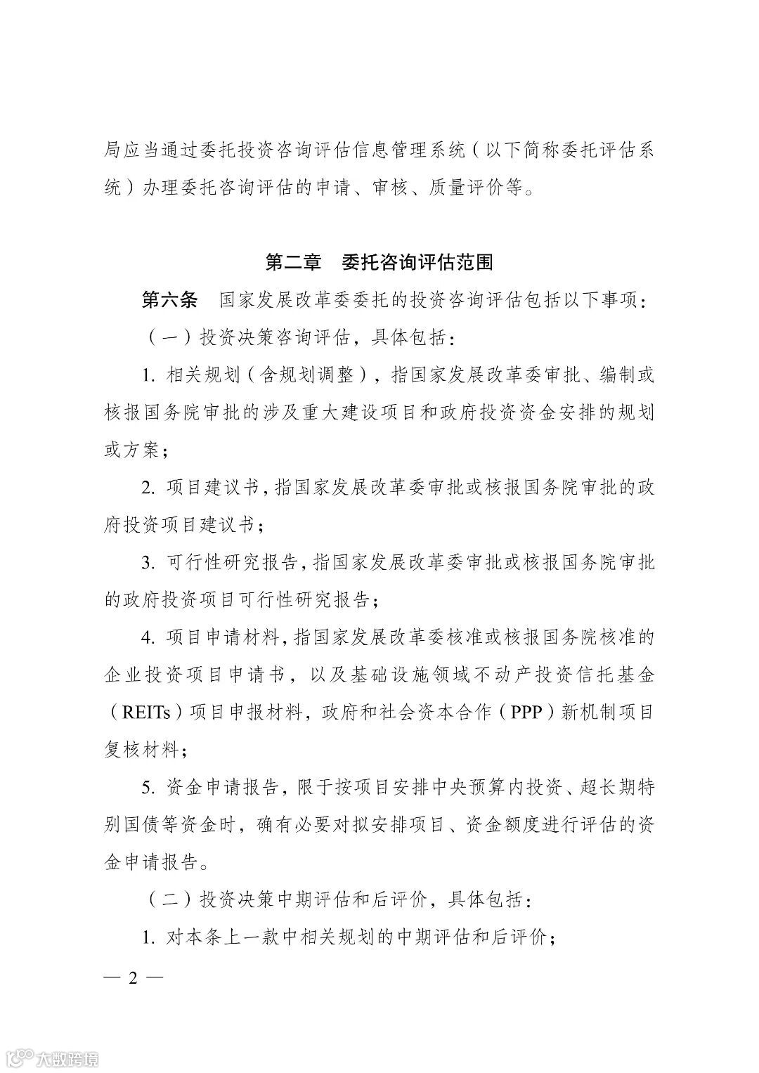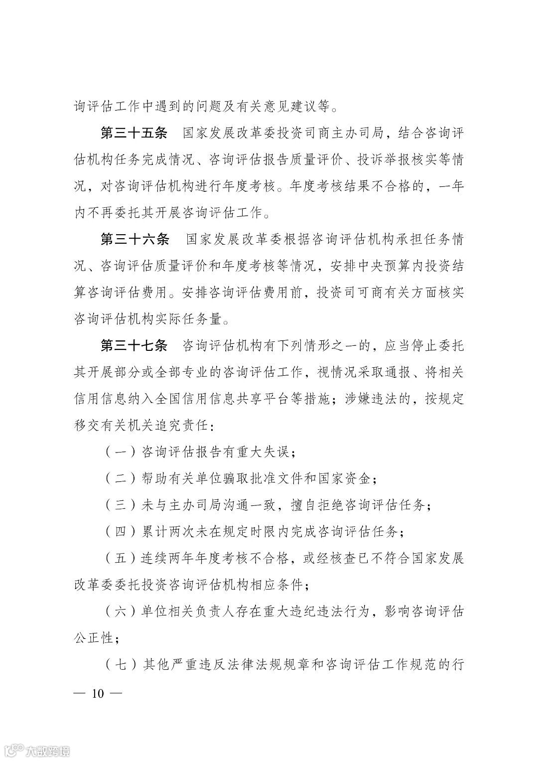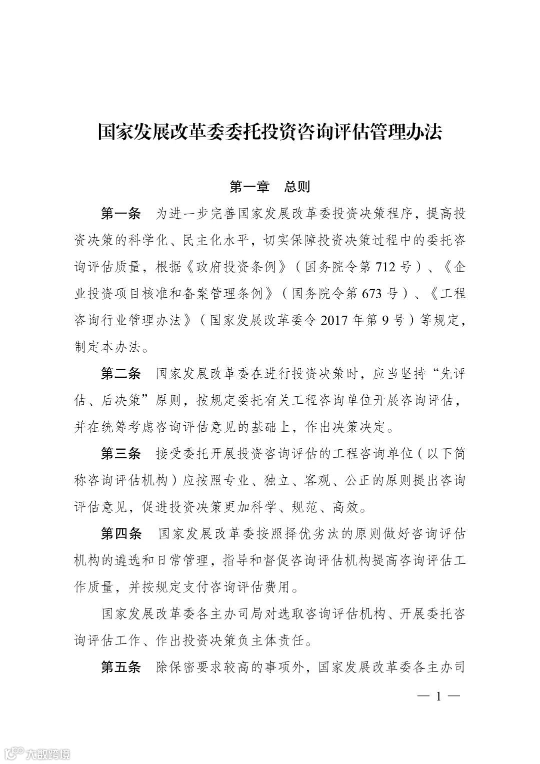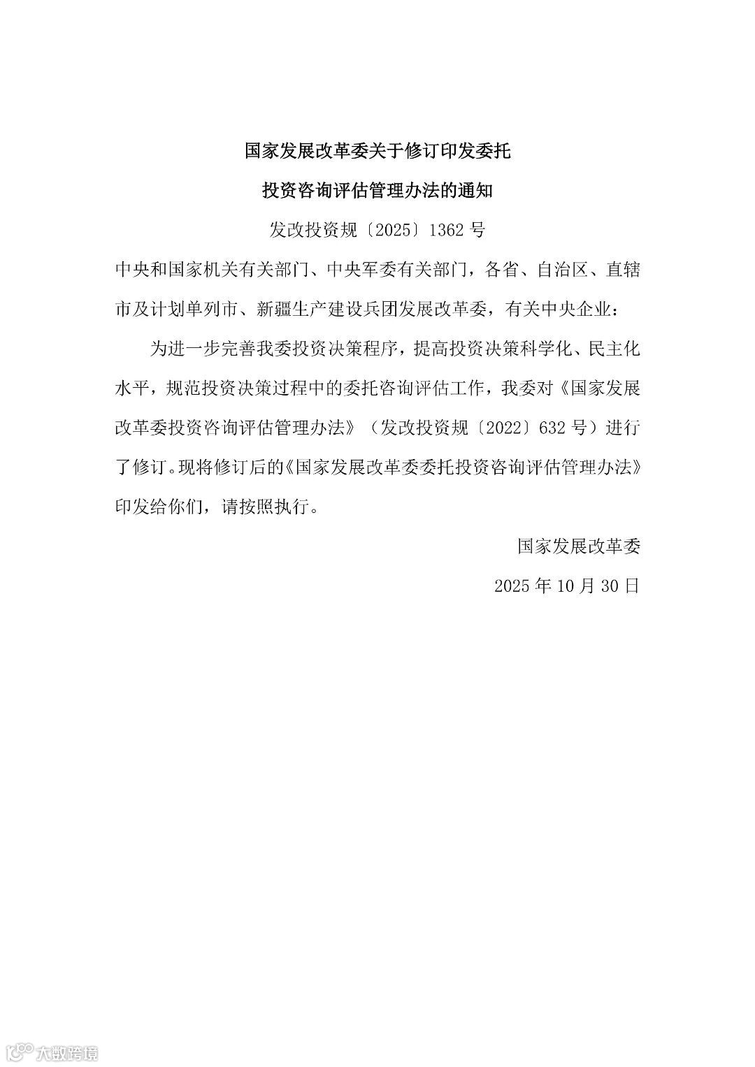 【政策分享】国家发改委修订印发《国家发展改革委委托投资咨询评估管理办法》:工程咨询行业迎来新规范