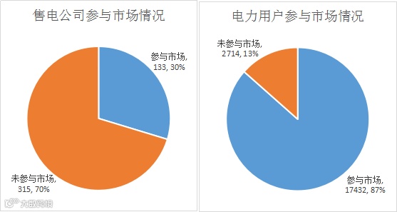 电力用户准入20146 家,有17432家参与市场,占比87%,其中,电力大用户776家,与2019年底相同;一般用户19370家,比2019年底增长15.35%。售电公司准入448家,比2019年底增长2.75%,仅有133家参与市场,占比约30%。