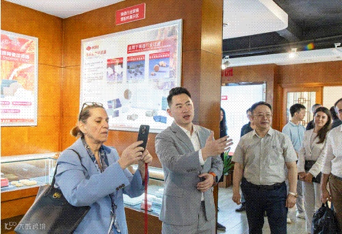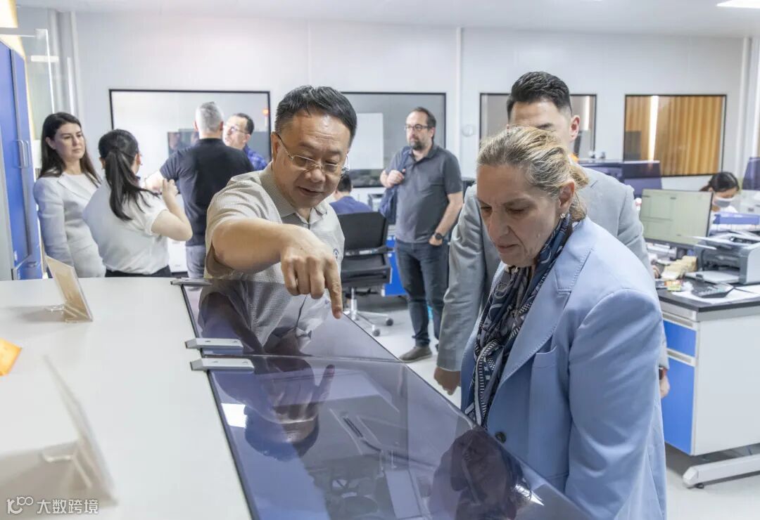 在金刚集团董事长冯斌的陪同下, Kale集团总裁Zeynep Bodur Okyay及团队参观了集团展厅及检测公司,对金刚集团应用于各大工业领域的新材料产品及检测设备认真观摩,并就相关问题进行咨询。