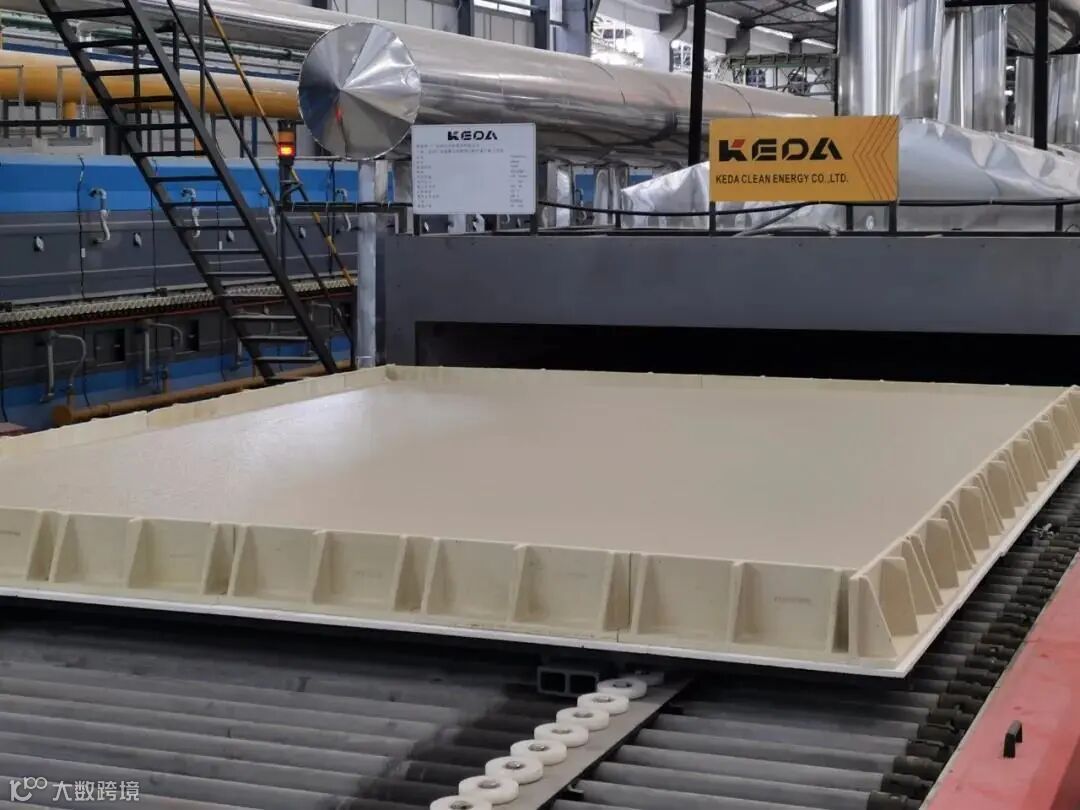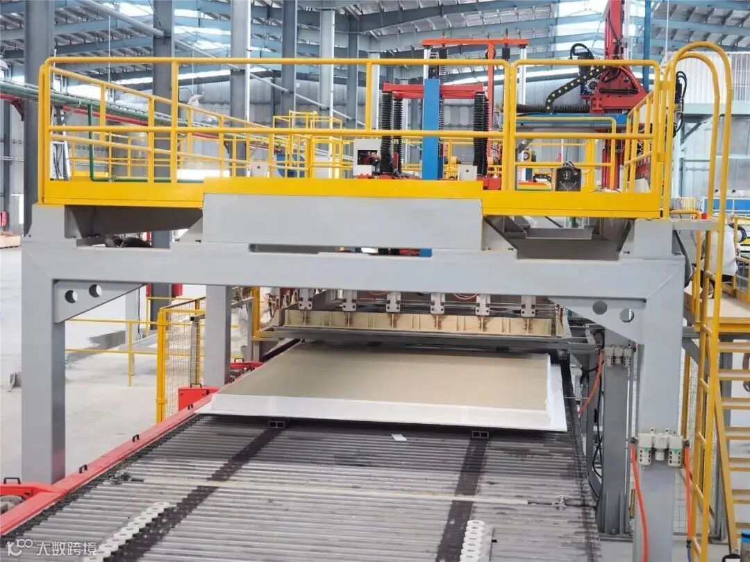 6月24日,由科达研发和建造的广东金绿能科技有限公司全新一代最大发泡陶瓷智能整线正式投产。科达与金绿能高管及生产负责人在现场,共同见证了新线发泡陶瓷板的出窑,所有发泡陶瓷板无一破损,成品率达到了100%。据悉,金绿能这条生产线生产的产品毛坯规格为2440×3000×100(mm),第一片出窑的毛板经过现场实测达到了2500×3150(mm),在产品规格上,不论横向还是纵向都做到了行业最大。众所周知,产品规格越大,对窑炉设备及辊棒承重的要求越高。