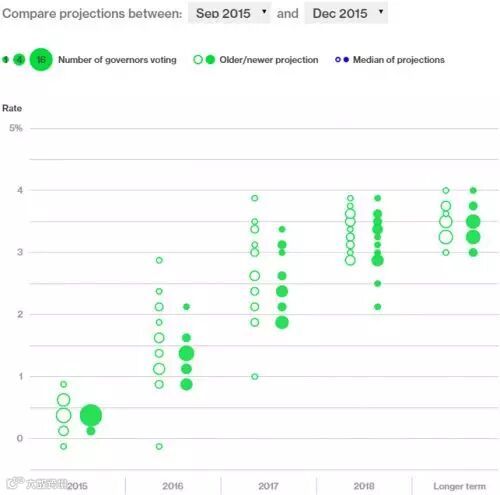 相比9月点阵图,本次官员们持极端鹰派立场的人数下降,对2016年利率预测中值仍为1.1375未变。