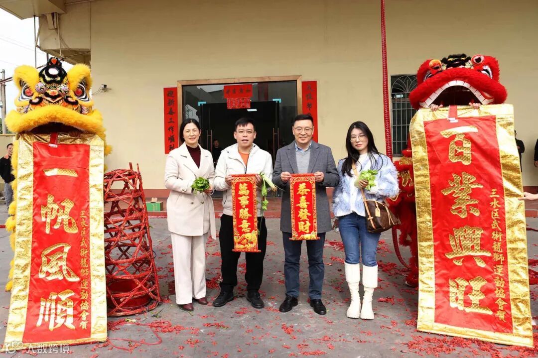 一片欢腾声中,金刚集团董事长冯斌带领集团总部、营销事业部等代表乘车前往广东产区各大生产基地,给已在生产一线开工的同事拜年。并将寓意祥和的舞狮表演先后带入了广东金刚南海分公司、禅城研发中心、金刚睿晟公司、金刚高明工业园、广东金刚高明分厂、检测公司高明分公司。领导们为大家派发新年红包,与大家亲切交谈,鼓励大家新的一年鼓足干劲,携手共创佳绩。