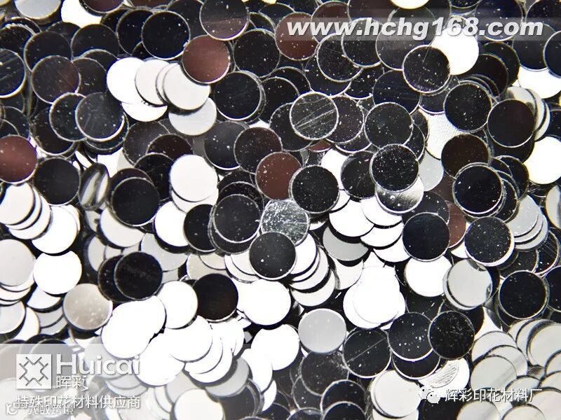 金葱粉俗称亮片、金片、银片、金点、银点、闪光粉、闪光片、金银粉,是由进口PET聚酯薄膜、彩虹膜、镭射膜,经精密高温涂布上色再经精细机械切割而成规格统一的亮片。