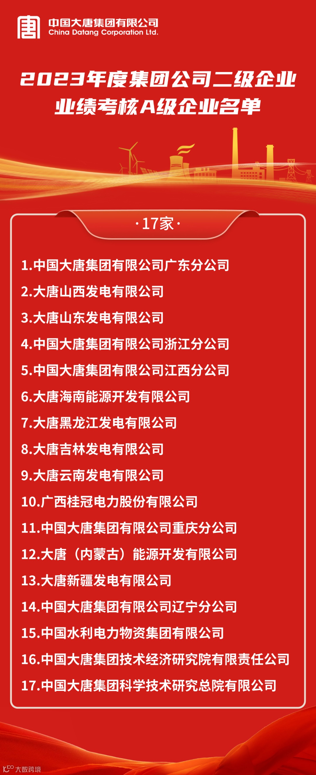 发布:2023年度中国大唐二级企业业绩考核A级企业名单