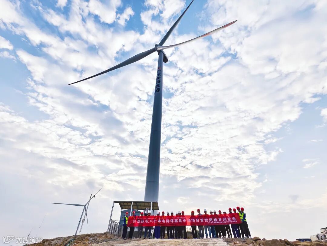 4月17日,随着兴仁市屯脚坪寨风电场首批机组叶片迎风转动,巨型风机叶片划破长空,绿色电流瞬间点亮监测屏幕,标志着兴仁市屯脚坪寨风电场首批机组顺利并网发电。这是粤黔新能源分公司今年继德江县双坝风电场并网后年内的第二个实现投产发电的风电场,为公司新能源高质量发展注入强劲动力,也为实现“再造一个能源集团”战略目标添砖加瓦。