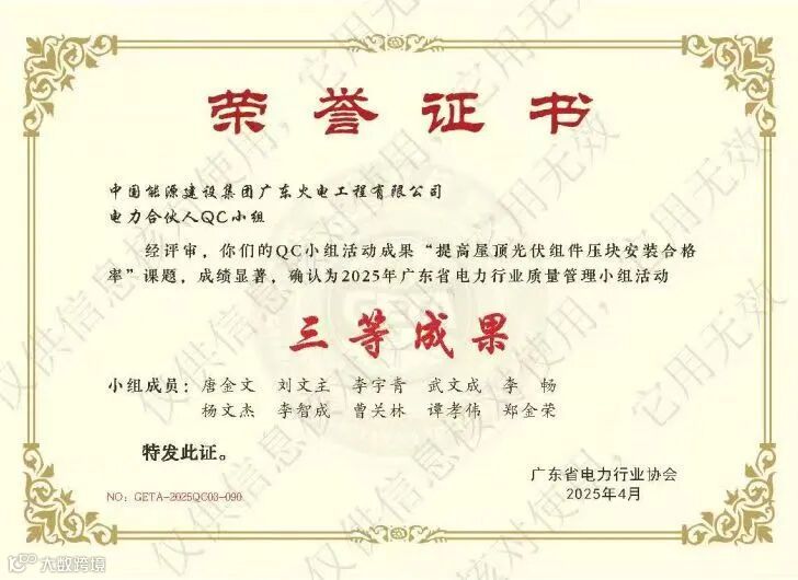 “冲锋QC小组”《提高风电场风机和箱变联合接地一次合格率》课题,通过优化施工方法节约成本2.6万元。