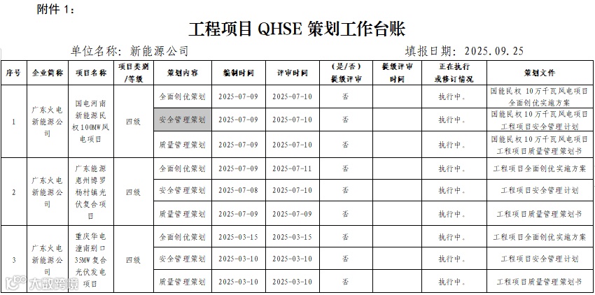 定期向上级报备创优推进情况,同步更新《工程项目QHSE策划工作台账》,实现质量管控“有计划、有跟踪、有落实”;