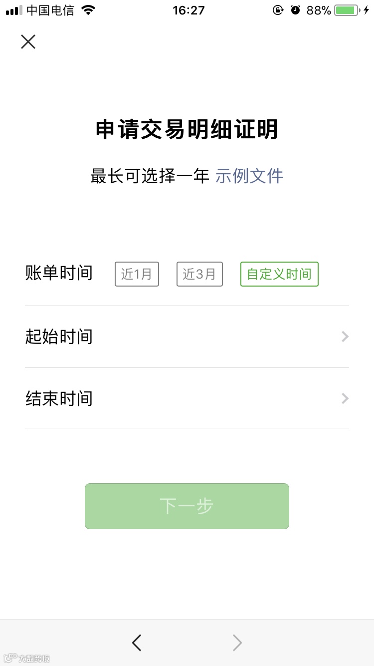 第六步:选择调取用途后,可进一步选择具体日期区间,最长不超过一年。