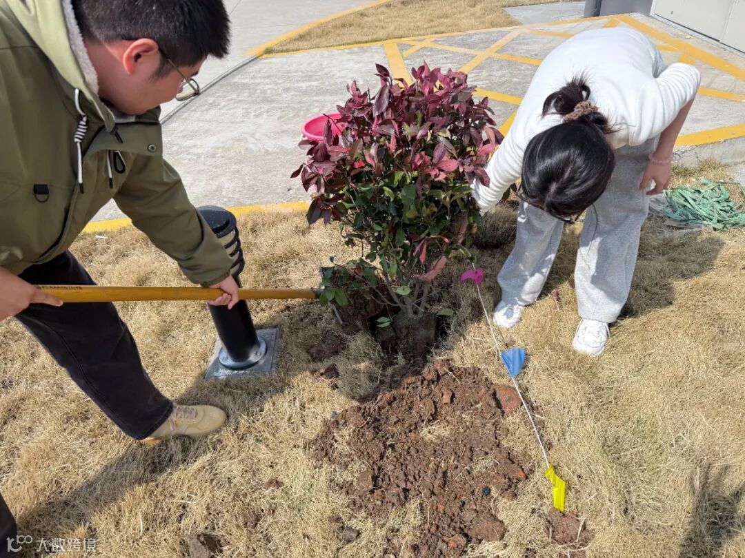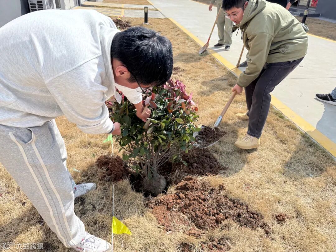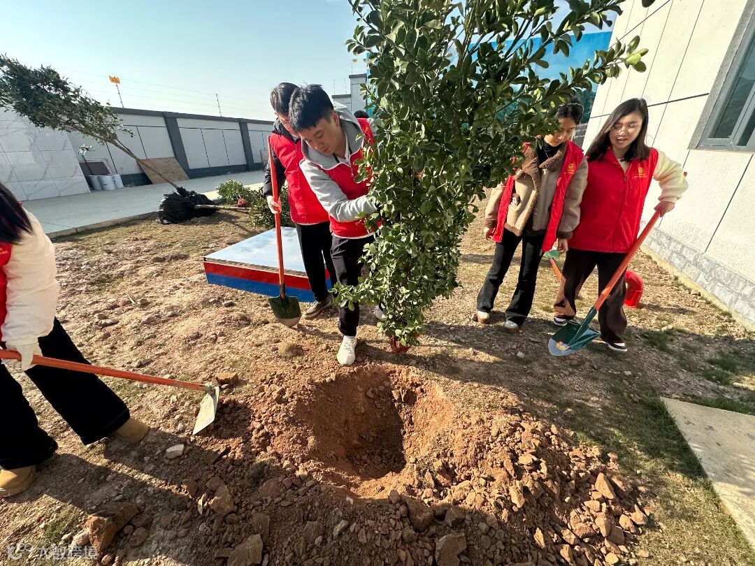 活动现场,大家分工明确,配合默契,挥锹铲土、栽种树苗、提桶浇水,每个步骤都有条不紊,现场一片热火朝天。在大家的共同努力下,树苗在土地上扎根,在未来将为场站增添绿色生机。