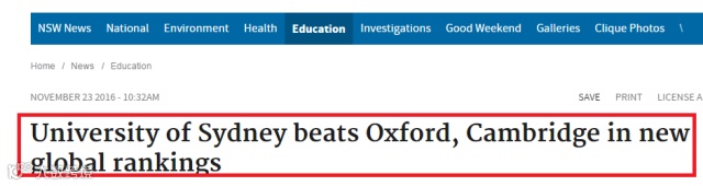 澳媒《Sydney Morning Herald》报道:悉尼大学在世界排行榜中击败牛津和剑桥!
