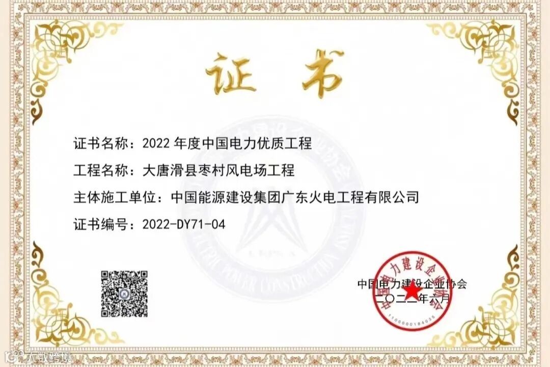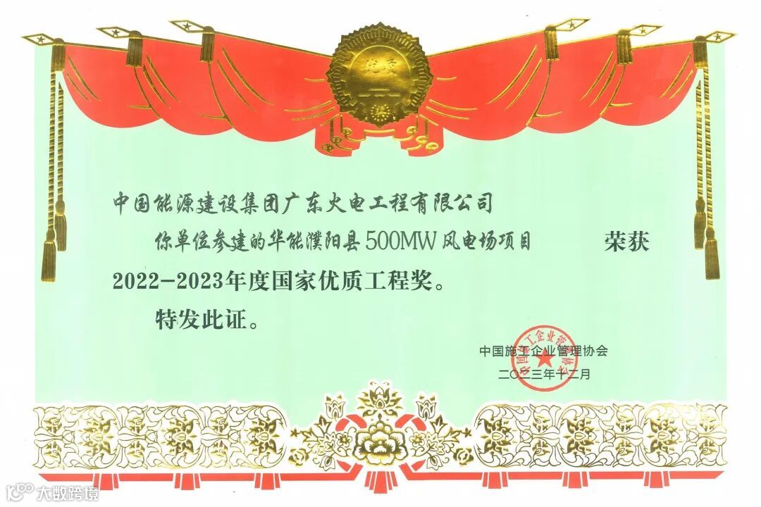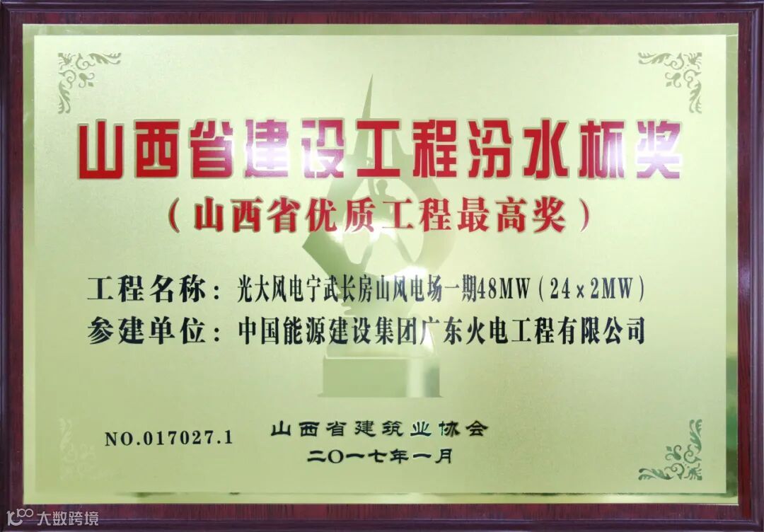 2017年1月,光大风电宁武长房山风电场一期48兆瓦项目荣获山西省优质工程最高奖——山西省建设工程汾水杯奖。