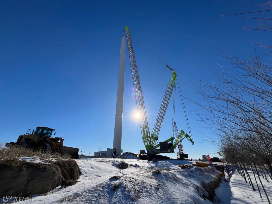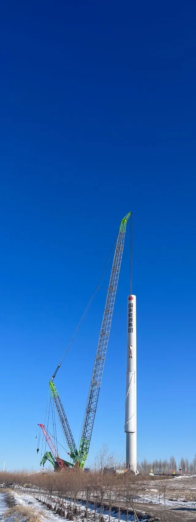战冰斗雪,不畏严寒,顺利完成6台风机吊装,有序推进工程建设。
