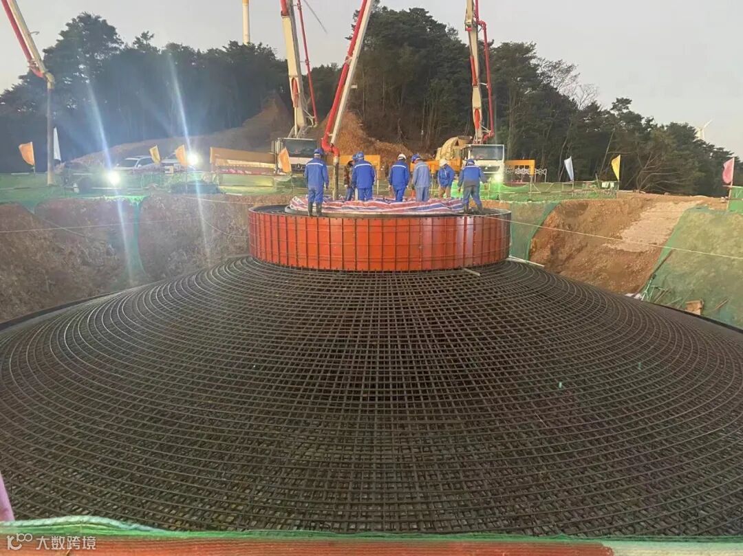 日前完成首台风机基础浇筑,全力推进工程施工进度。