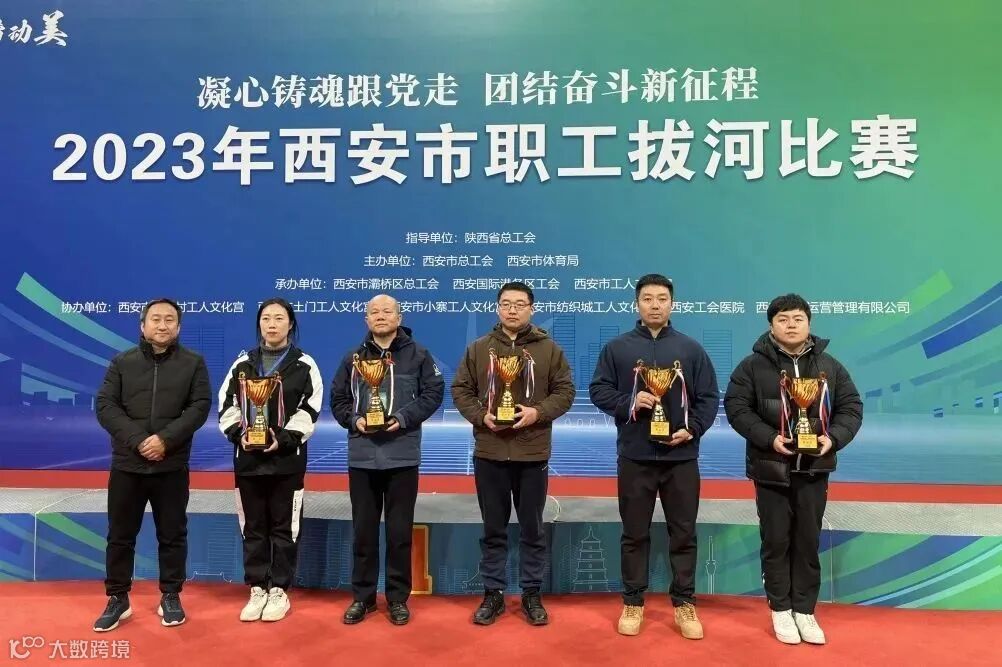 12月28日,由西安市总工会、西安市体育局主办的“中国梦·劳动美——凝心铸魂跟党走 团结奋进新征程”全市职工拔河比赛在西安奥林匹克体育中心体育馆成功举办。本次比赛各区县19支代表队,400余名职工参加比赛。由14名集团职工组成的拔河队代表新城区参加了比赛。