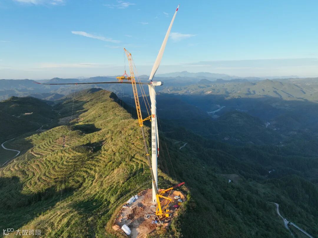 据悉,石阡县龙宝山风电场项目安装6台单机容量为5.0MW的风电机组,风机轮毂中心高度110米,叶轮直径约190米,叶片长度约92米,叶轮采用目前国内最新型的单叶片吊装工艺。截至发稿日,该项目已完成全部6台风机基础浇筑、3台风机吊装。