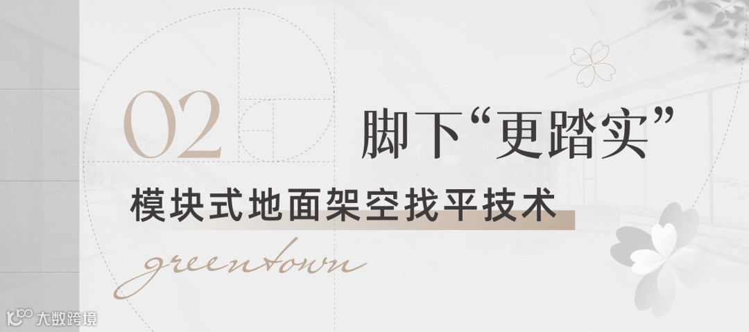 绿城模块式地面架空找平技术,就像是一套拼装精准的“地面骨架”,由架空结构、加固节点、收边与过门模块等多个标准单元构成,特别优化了支脚与基层板之间的连接方式,不打孔、不破坏,依靠机械结构就能牢牢固定,有效避免基层板开裂,让整块地面更加稳当、耐久。