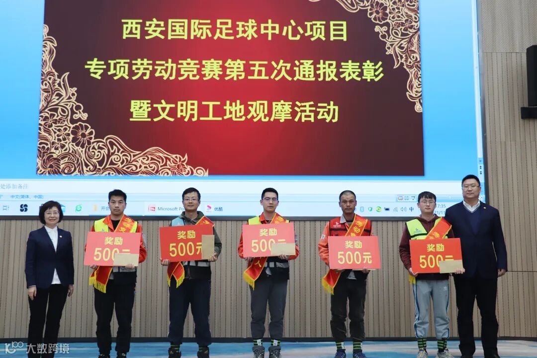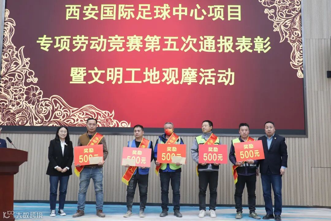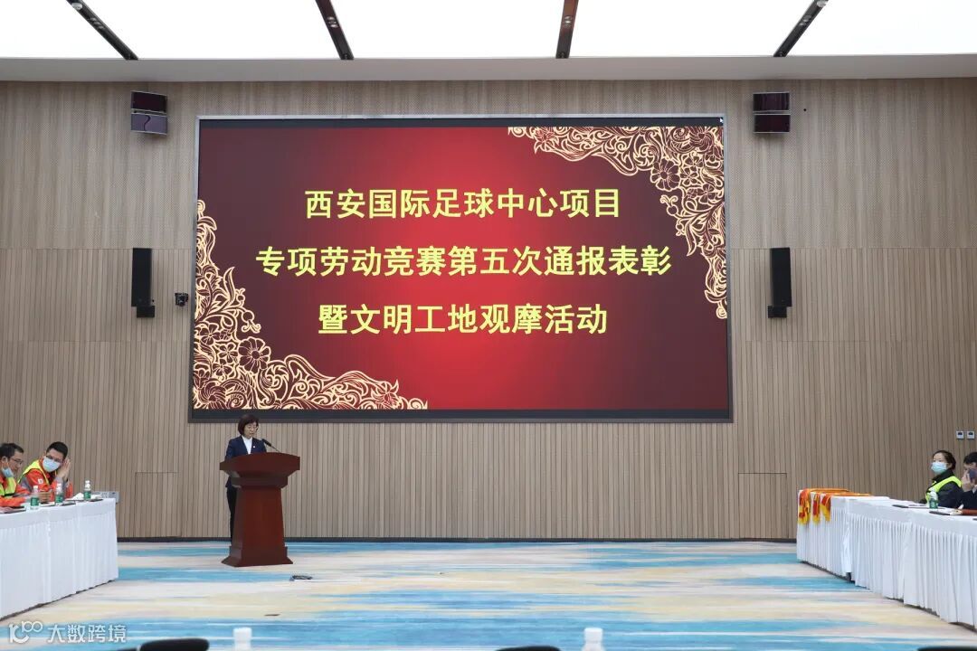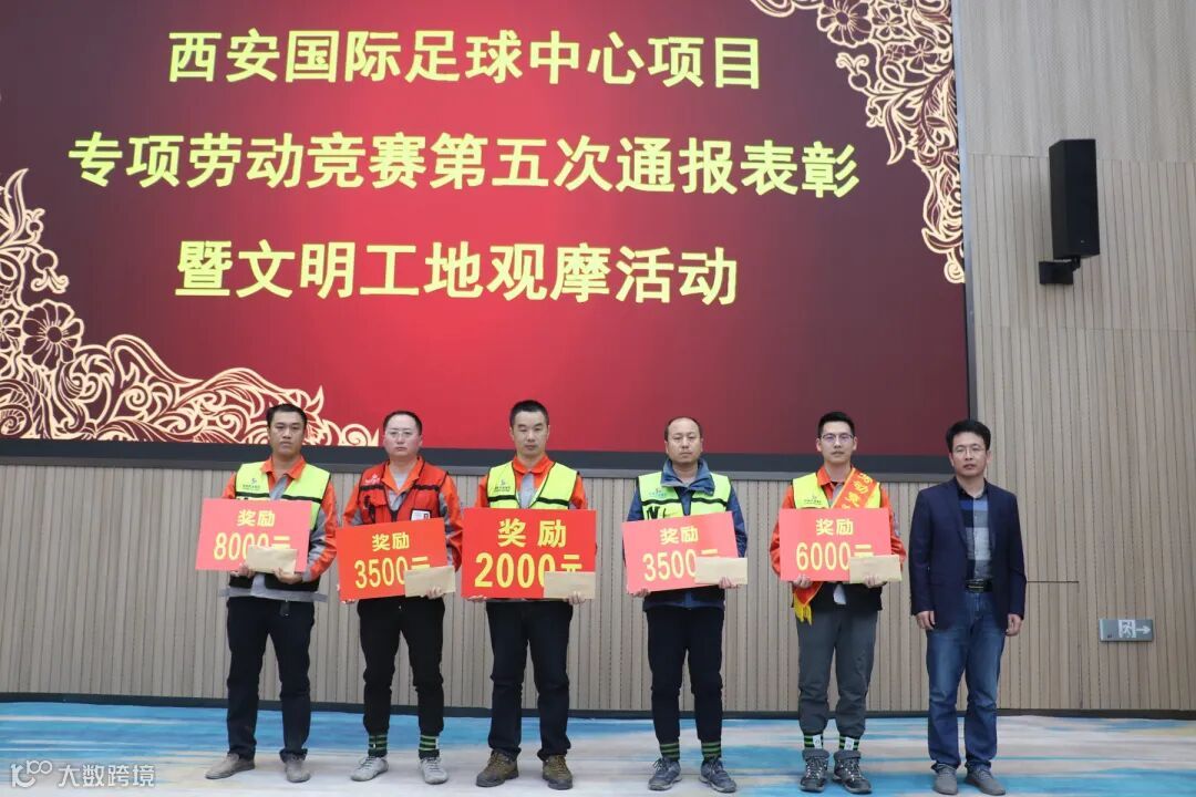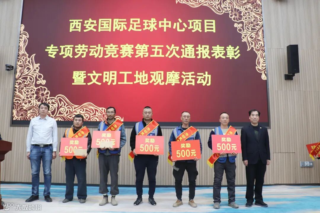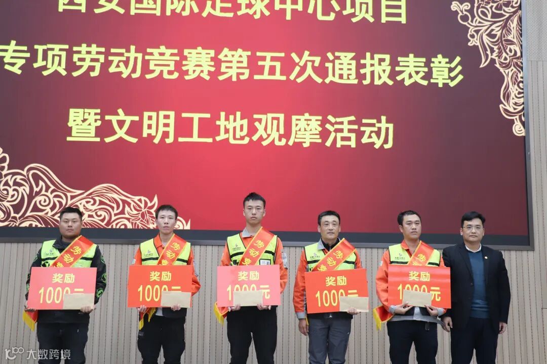 11月13日,陕建钢构集团举行西安国际足球中心项目专项劳动竞赛第五次通报表彰会及文明工地观摩活动。