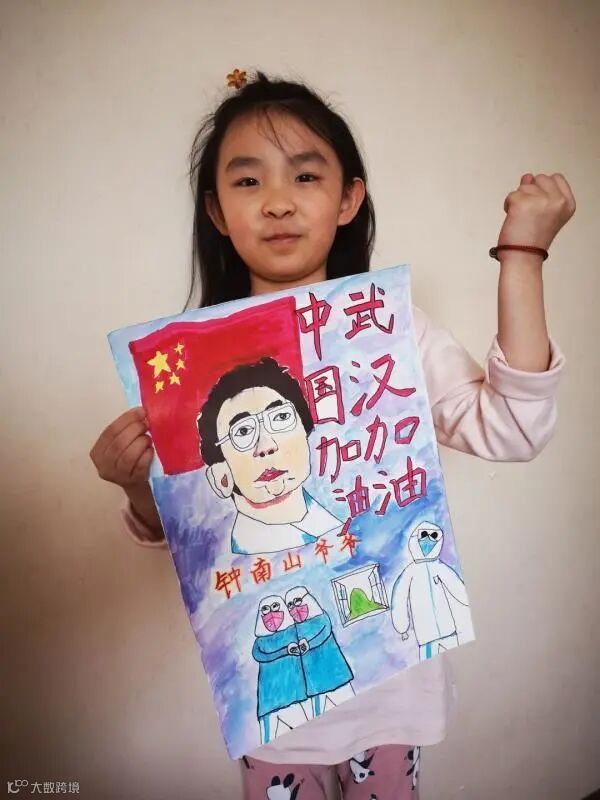 还有小朋友创作了手工绘画,为抗击疫情鼓劲、加油!