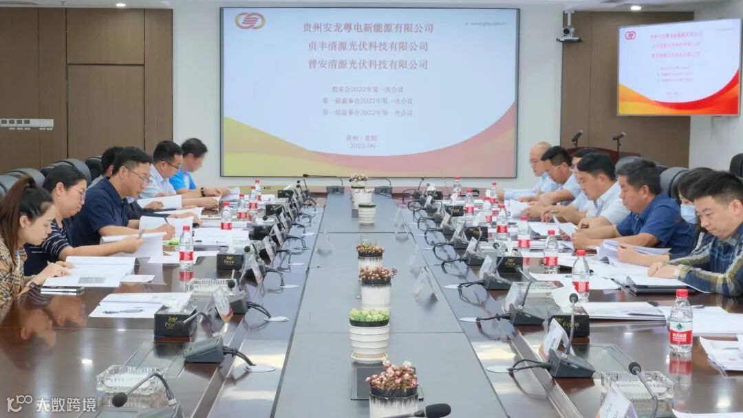 6月16日,贵州安龙粤电新能源有限公司、普安清源光伏科技有限公司及贞丰清源光伏科技有限公司股东会2022年第一次会议暨第一届董事会、监事会2022年第一次现场会议在贵州省贵阳市顺利召开。广东能源集团贵州有限公司授权股东代表方阳,中国电建集团贵州电力设计研究院有限公司授权股东代表杨梅,安龙、普安及贞丰公司董事、监事及授权代表参加了会议。股东单位及公司相关部门负责人列席了会议。会议由董事长孙佳义主持。