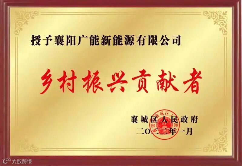 近日,湖北省襄阳市襄城区人民政府对广东能源集团贵州公司在当地乡村振兴工作中作出的贡献进行表彰,特授予贵州公司全资子公司襄阳广能新能源有限公司投资的襄城区木桥农光互补发电项目“乡村振兴贡献者”称号。