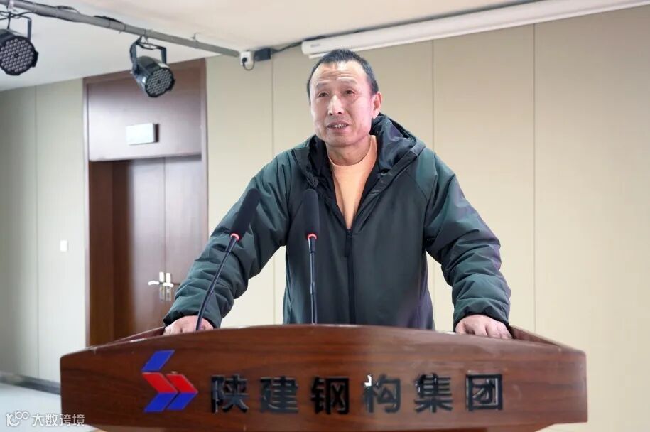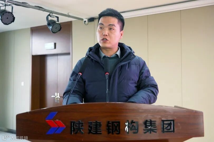 会上,钢构集团总经理范永辉讲话中首先对付浩、刘爱英一行的到来表示诚挚欢迎,此次活动是贯彻实施集团人才强企战略,坚持开展技术培训、岗位练兵、技能竞赛等活动,加强人才队伍建设,培养一批高技能、知识型、复合型的人才,以技能竞赛为契机,加强学习,历练技能,超越自我,共同提高,为集团的跨越发展苦练技术,争做贡献,勇攀高峰。