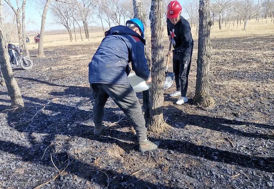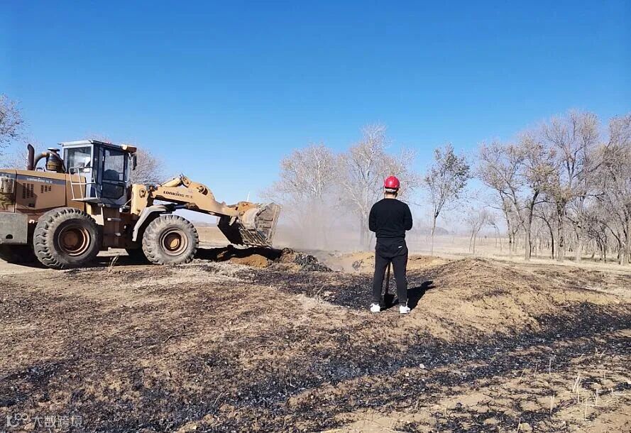 赵雷:当我赶至现场以后,观察火势较为迅猛,立即组织成立应急处理小组,布置灭火任务,快速行动。一共分成四个小队,一小队使用装载机沿着火势蔓延下风向,铲土掩埋,将枯草隔离;二小队使用灭火器,扑灭离机位近的火源;三小队开皮卡车去附近村子取水、灭火;剩下其余人员与我组成四小队一起使用铁锹翻土灭火。