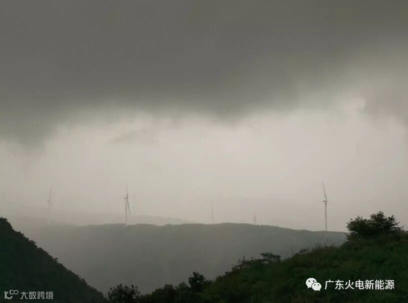 暴雨中若隐若现的风电场