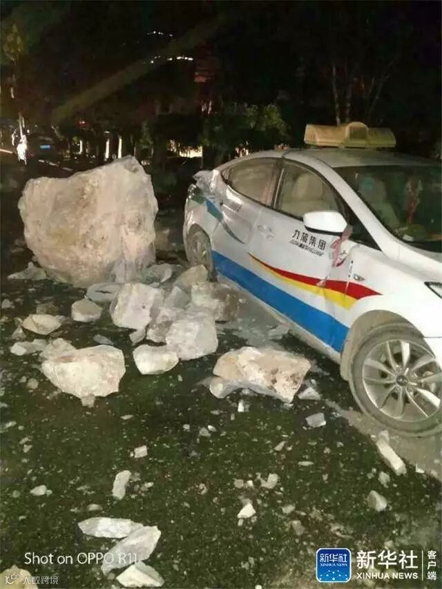 这是九寨沟地震中受损的出租车(8月8日摄)。 新华社发
