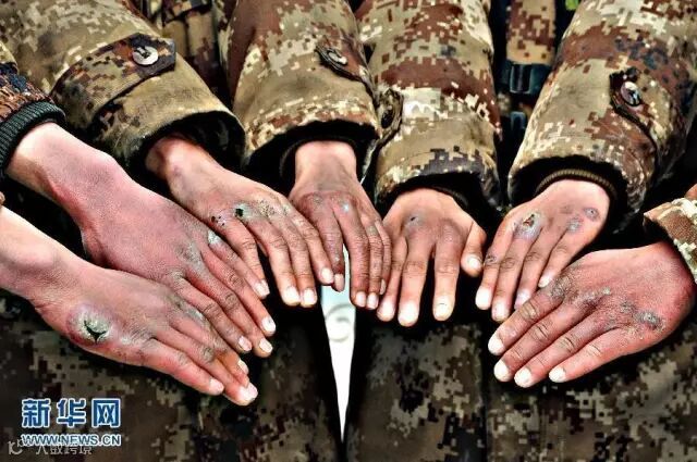 年轻的战士卫国戍边,戈壁滚打,紧握钢枪,20出头的年纪却有一双“风烛残年”的老手。