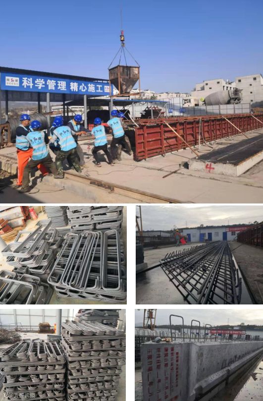 梁场的标准化生产,展示出陕建人的精品意识,每个部位科学管理,精心施工,事前筹划。既有丰富经历的技术顾问张锁平,又有年轻肯干的鱼振元和郭新文,为梁场的建设付出了 40 多个日日夜夜。看那钢筋构件标准化的生产、码放、安装,再看那成品空心板标识,浇筑过程中的齐心协力安放气囊,每个细节都能看到工人师傅们的精心和汗水。