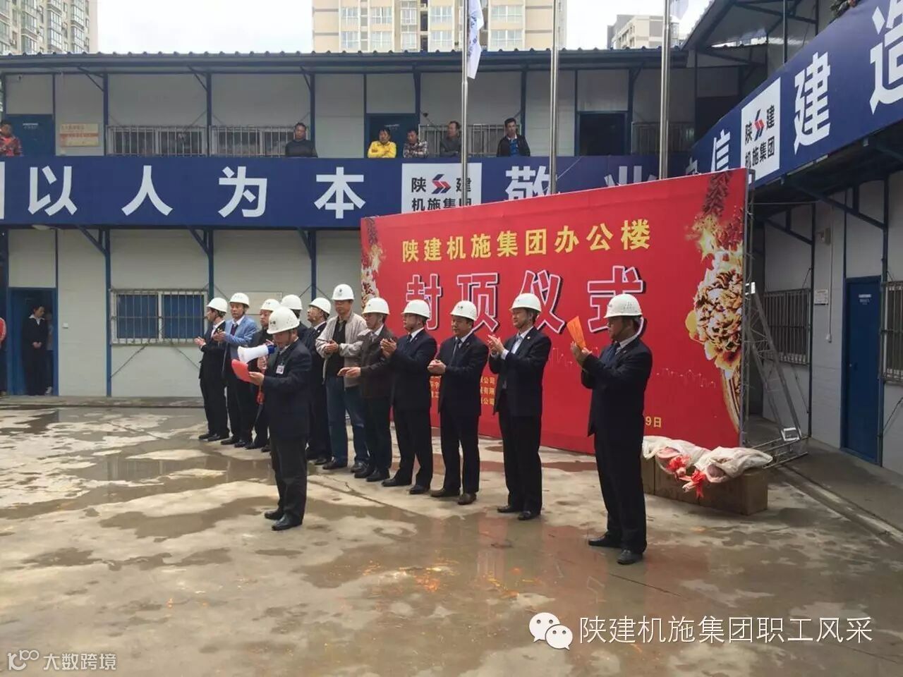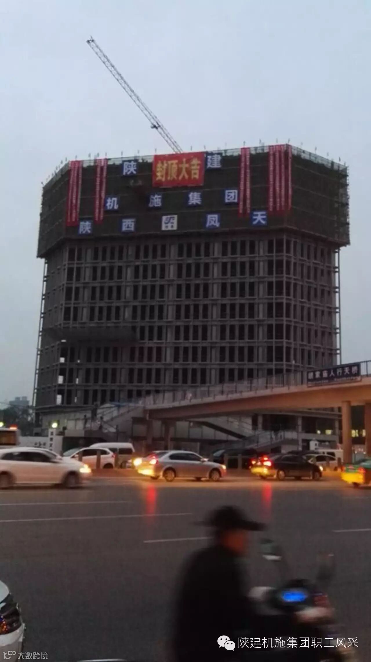 陕建机施集团办公楼于4月8日顺利封顶,举行了简朴的封顶仪式。