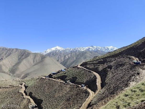 巴什干克金矿项目工区位于中昆仑,海拔3300—4000m,距最近小镇且末县奥依亚依拉克镇180km之遥。工作区与小镇仅有一条略经修葺的土路,路途艰辛、人迹罕至,单趟耗时就需五六个小时。面临高原缺氧、黄沙肆虐、无人区、无通信信号等种种困难,在此开展工作,对生理和心理都是巨大的挑战。