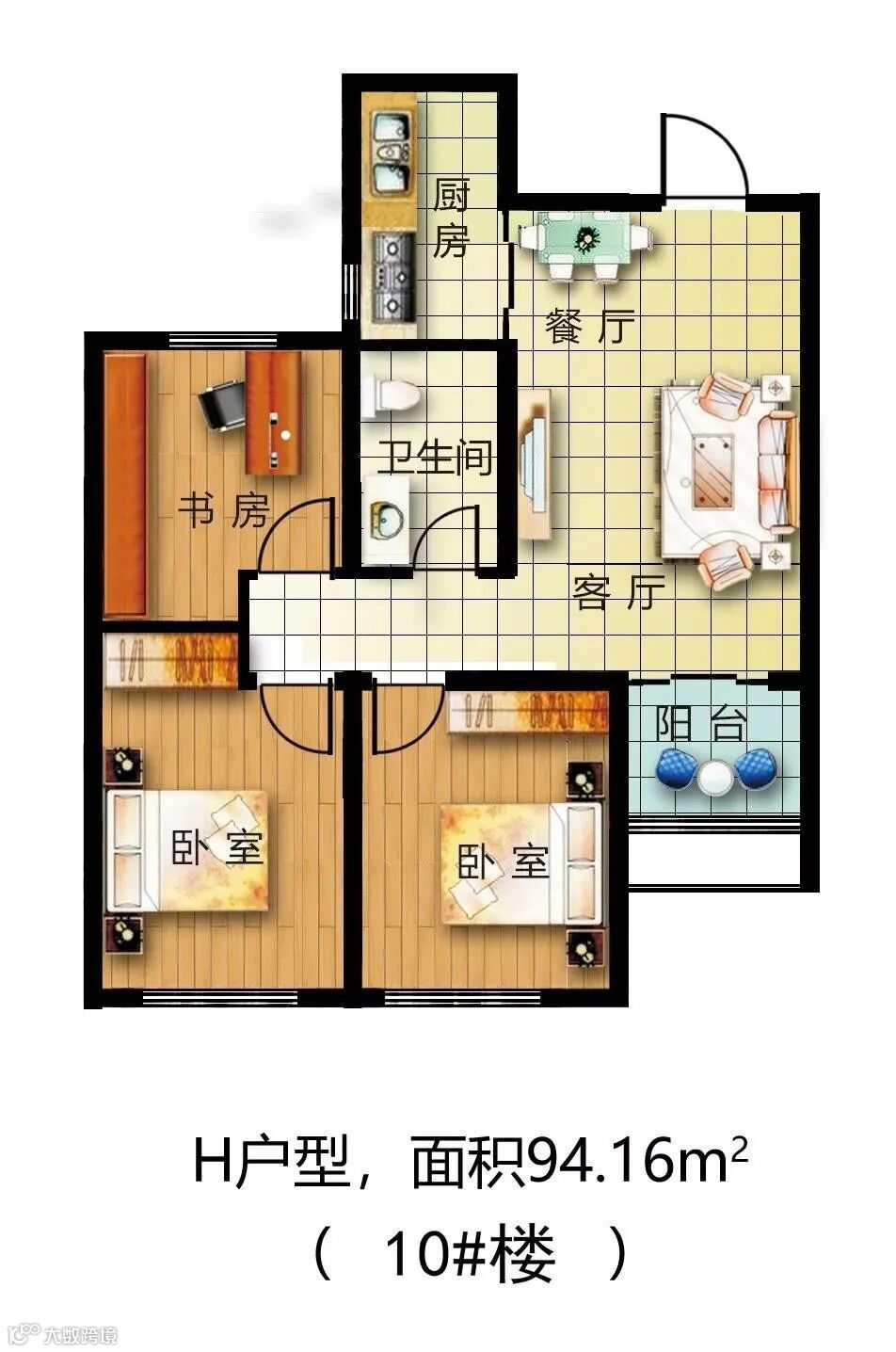 户型解析:双卧朝南,采光面宽;次卧配备观景阳台,充分保证了室内的采光;空间布局合理;卧室和活动区域分离,方便业主日常起居。