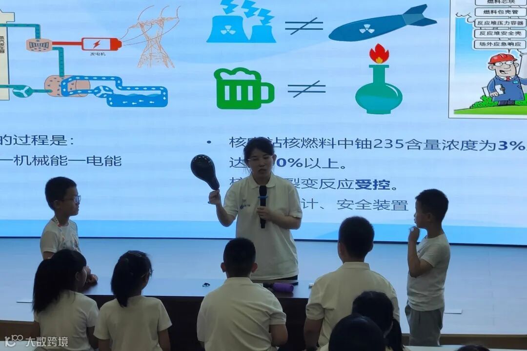 南方中心的孩子们早早集合,沿着父辈足迹参观了湖南省郴州市711矿时光小镇。在这里,他们关于父辈事业的疑问都一一得到解答。光压驱动瓶中的扇叶、推倒多米诺骨牌以模拟链式反应、点燃不同浓度酒精灯证明核能安全性……一个个小实验牵动着孩子们的好奇心,催生着求知欲。孩子们兴致勃勃,不断地提问、抢答,一场寓教于乐的核科普活动在欢声笑语、收获满满中按下了定格键。
