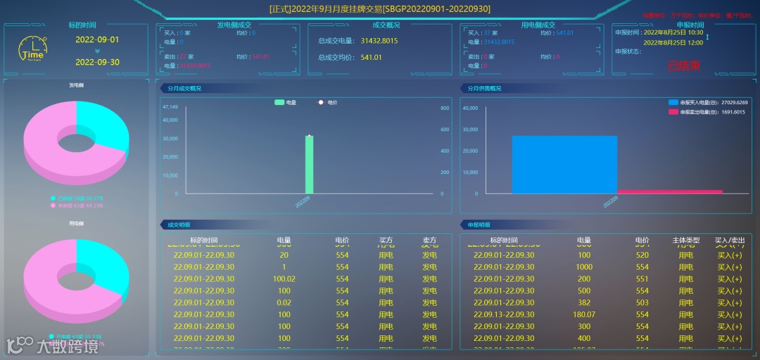 交易标的为9月的成交电量19.4亿千瓦时,成交均价542厘/千瓦时,环比(相较8月份,下同)下降6.97厘/千瓦时。