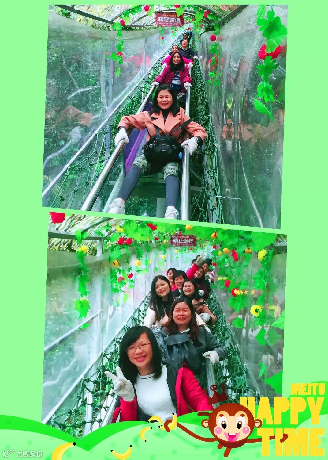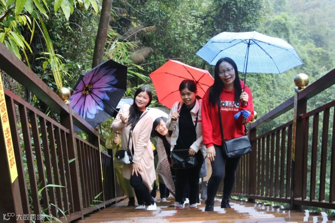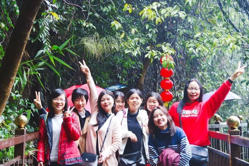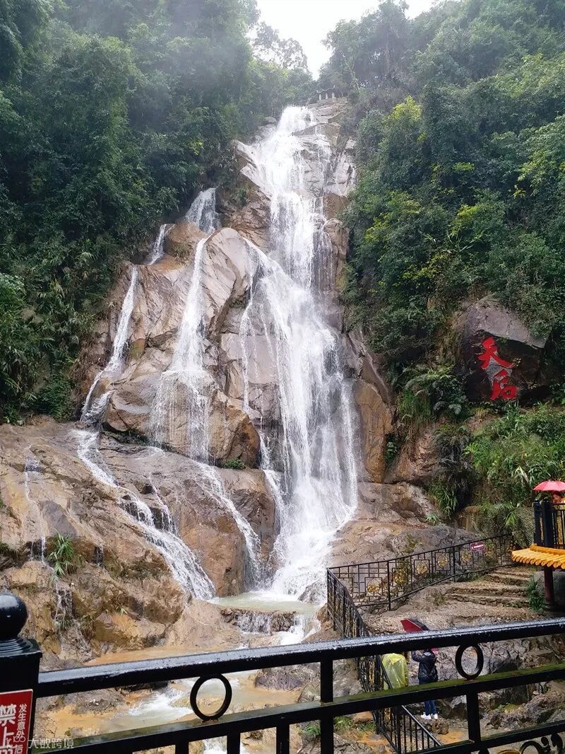 烟雨蒙蒙,蹒跚前行,来到最为著名的天后瀑布,溪水顺山岩铺泻而下,如珠帘挂壁,大家一边欣赏绝美的山水画卷,一边稍事休整,然后继续携手向前,勇攀高峰,抵达最令人心驰神往的玻璃桥。