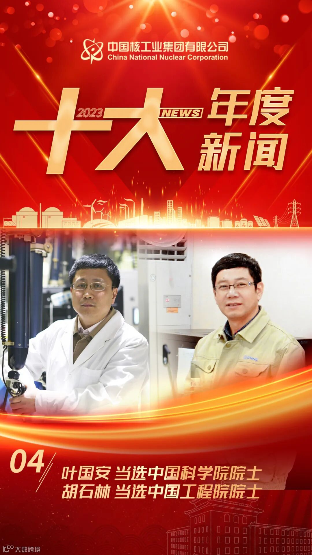 2023年11月22日,2023年两院院士增选结果正式揭晓,中核集团首席科学家、中国原子能科学研究院研究员叶国安当选中国科学院院士;中核集团首席科学家、中国原子能科学研究院副总工程师胡石林当选中国工程院院士。这是中核集团实施人才强国战略、健全高层次人才支持保障机制的重要体现,为实现中核集团“三位一体”奋斗目标,为核强国建设提供了强有力的人才支撑。2023年中核集团19名技能人才获评全国技术能手称号。至此,中核集团“全国技术能手”首次实现破百!