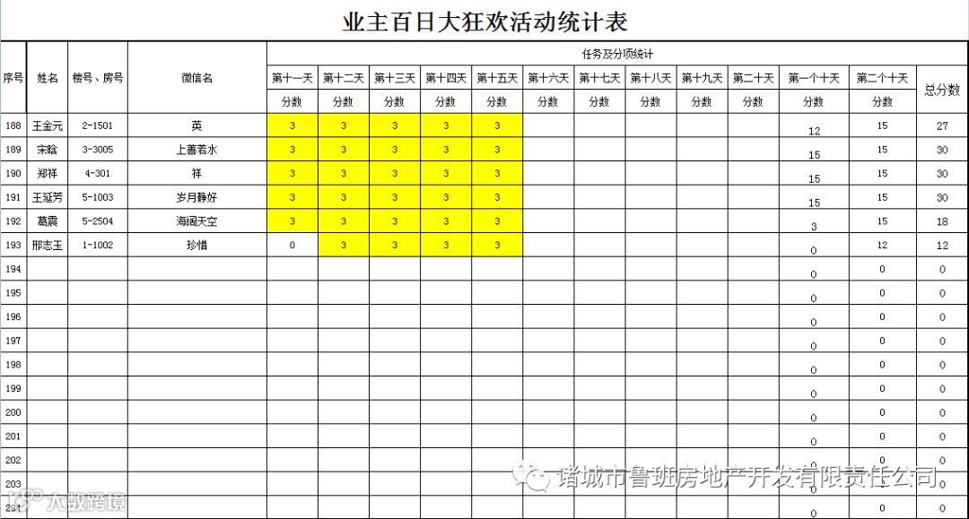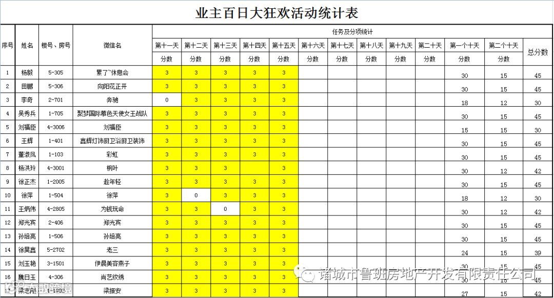 ③.活动结束后,依据业主得分,分高者胜。