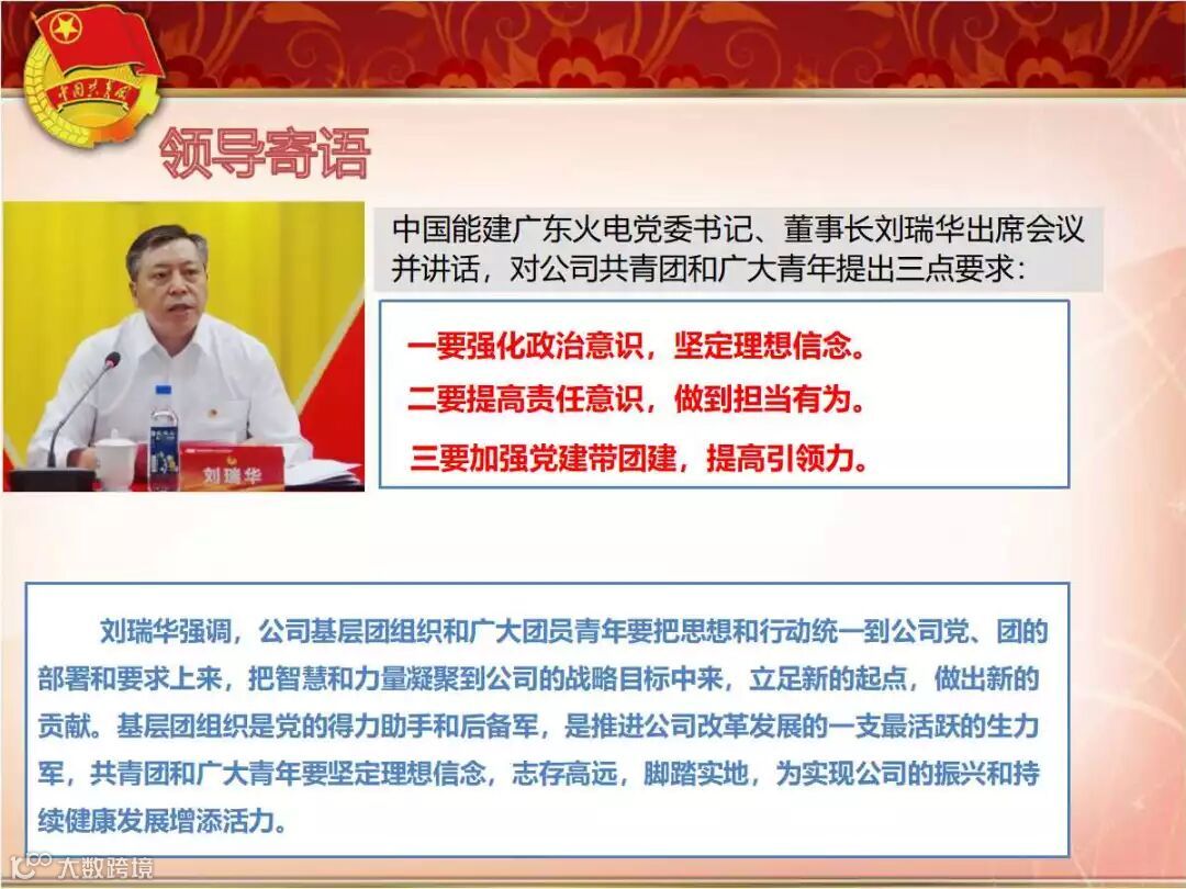 广东火电新能源公司11月16日,中国能建广东火电第一次团代会在公司总部胜利召开,此次团代会是公司团组织迈进新时代、开启新征程、续写新篇章的盛大会议。新能源团支部就广东火电第一次团代会报告进行分析、提炼,并组织学习,将学习会议精神转化为立足岗位、脚踏实地工作的不竭动力,用激昂的青春和热血,谱写出新的篇章。