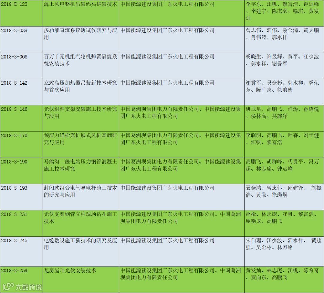 2018年2月25日至3月13日,中国电力建设企业协会(简称:中电建协)开展了2018年度电力建设科技进步奖的评审,中国能建广东火电共有11项课题获奖,其中二等奖1项,三等奖10项。广东火电新能源工程公司荣获1项二等奖及5项三等奖。在2018年3月15-16日的QC成果发布中,广东火电新能源工程公司QC成果荣获二等奖。