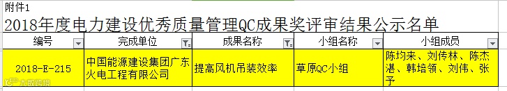 此外,广东火电新能源工程公司参与发布的QC成果《提高风机吊装效率》荣获二等奖。据悉,此项QC成果由草原QC小组选定课题,根据PDCA循环原理及运用5W1H分析法,通过现状调查、原因分析、要因确认、制定对策等环节,在小组成员的共同努力下,取得了成效,解决了现场的实际问题,给公司带来了较为理想的经济及社会效益。