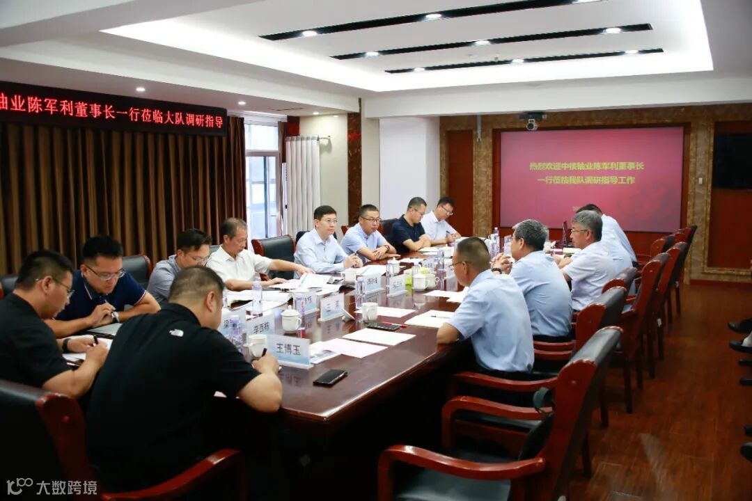 8月31日,中核铀业党委书记陈军利一行到二〇八大队调研指导工作。中核铀业领导唐大伟,中核地勘集团党委书记、董事长谭德峰,中核资源党委书记、董事长吕荣平陪同调研。