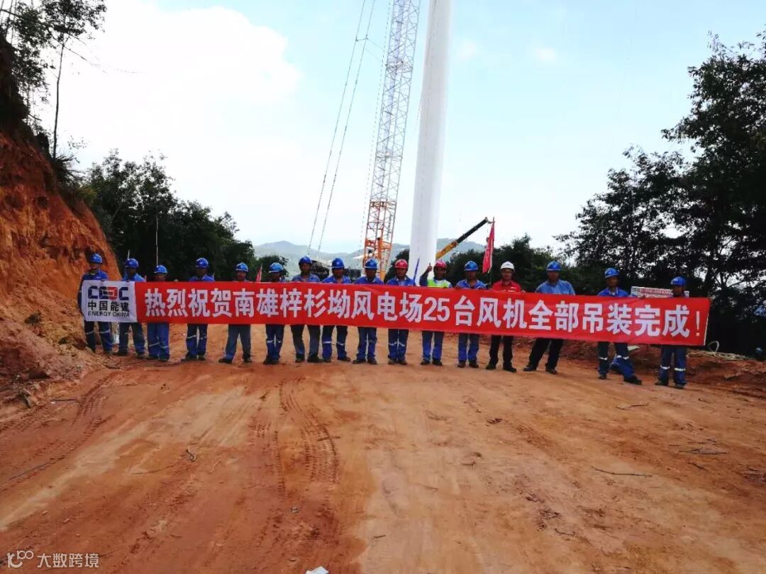 南雄梓杉坳风电项目位于广东省南雄市东北侧丘陵地带,风电场高度在500m-1000m之间,风场中心距西侧南雄市区约32km,拟安装25台2.0MW风电机组,装机容量50MW,中国能建广东火电负责项目的风机安装及箱变工程。