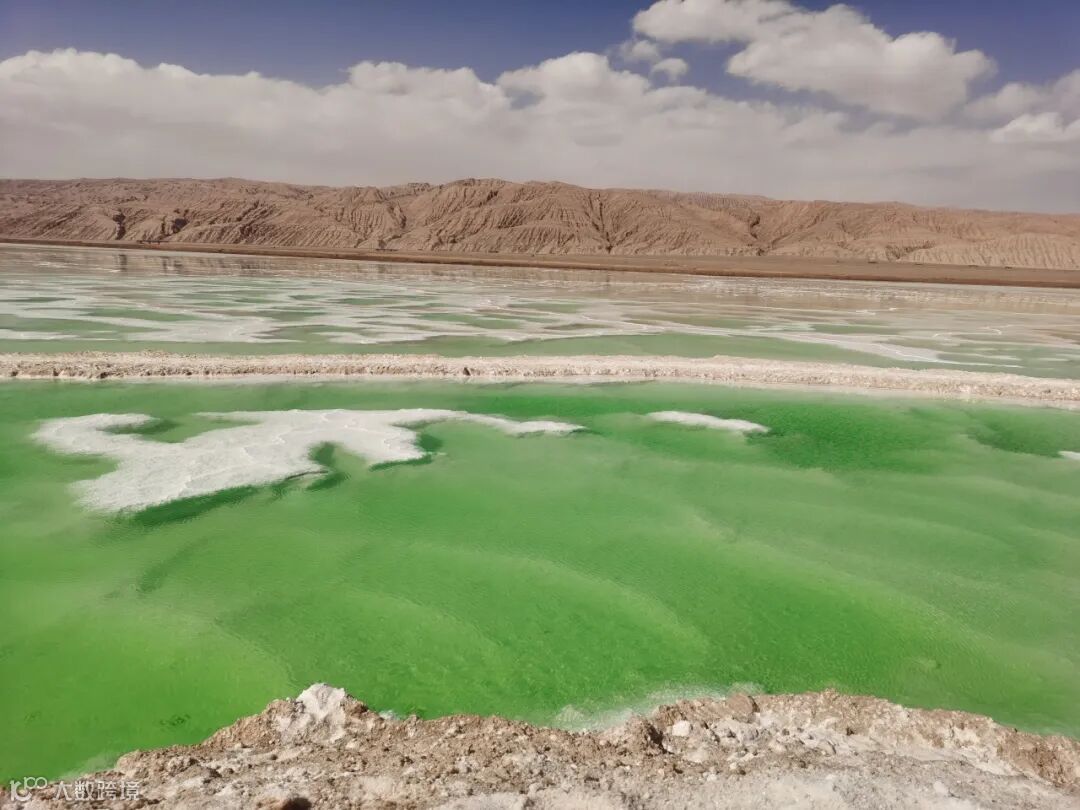 在青海柴达木盆地茫崖工作区路线地质调查途中,二〇三地质人偶遇宛若碧玉的“翡翠湖”。(郗昭)