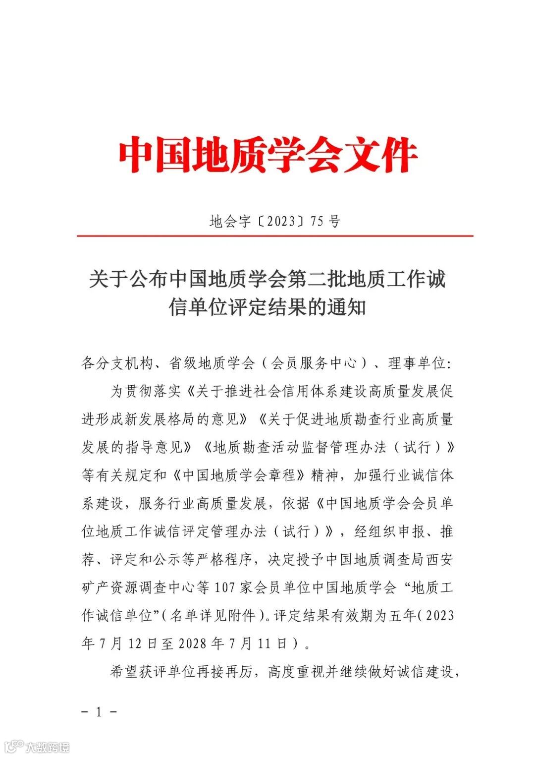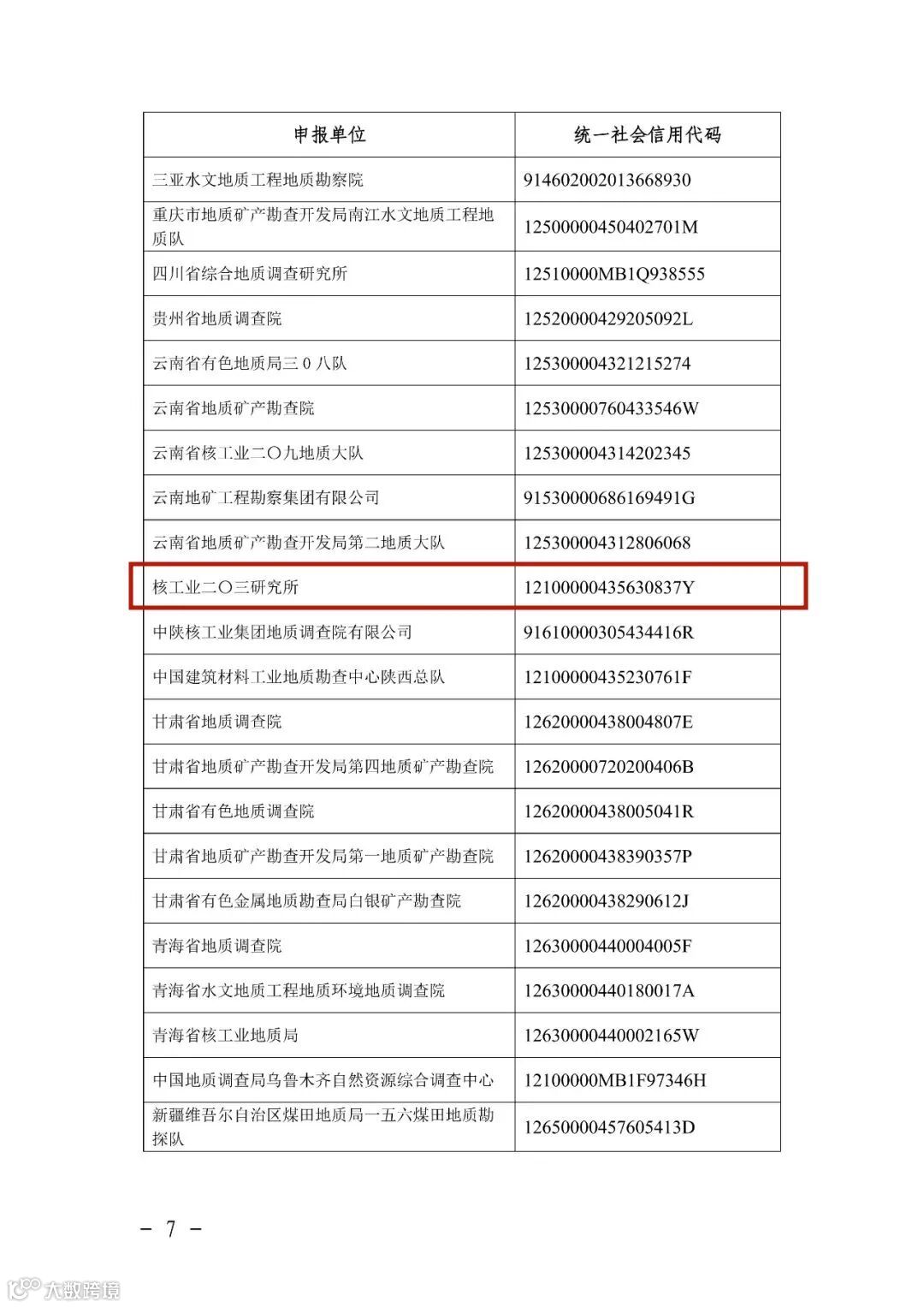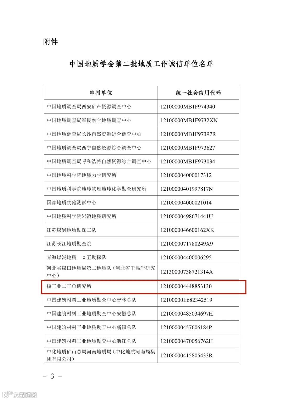 中国地质学会正式公布了第二批地质工作诚信单位评定结果,中核地勘集团二〇三所、二三〇所成功入选“地质工作诚信单位”名单。