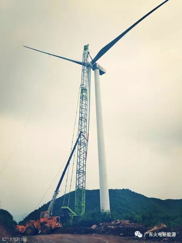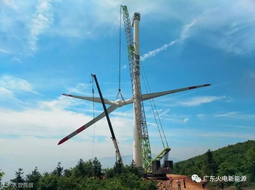 在项目经理的一声令下,中联650t履带吊、75t汽车辅吊发动机声音轰隆而起,叶轮徐徐升起,近百米的白色叶轮与主吊、青山在空中绘成一幅美丽的风景画。历时30分钟后,叶轮顺利与机舱对孔就位,一会八十多米高的机舱内传出“嘣嘣嘣”的打力矩的声音,风机安装顺利完成,众施工人员总算露出一脸轻松的笑容……
