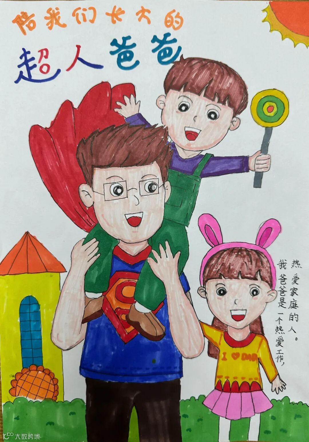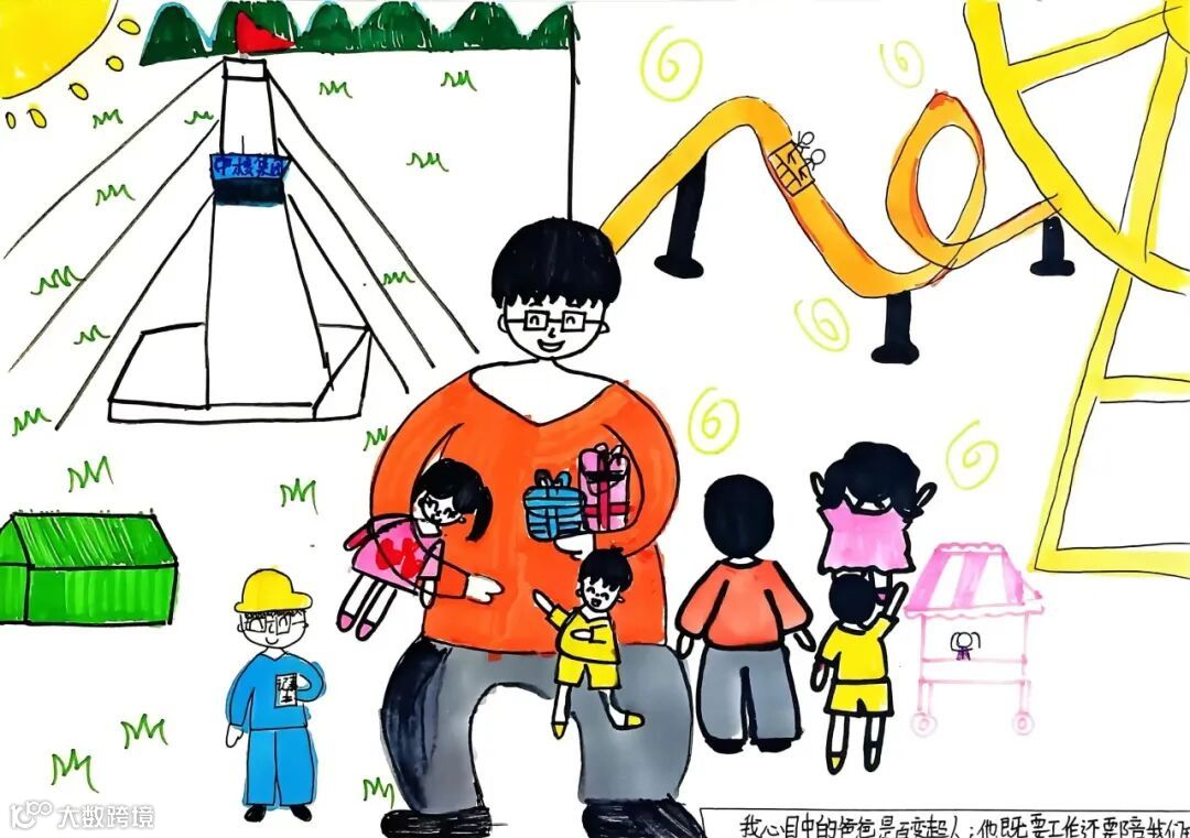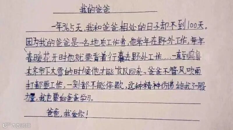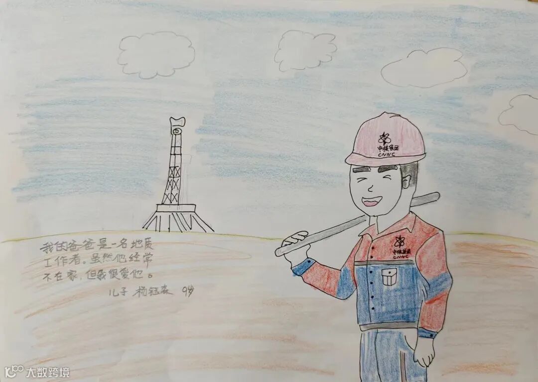 【右下】杨龙之子:我的爸爸是一名地质工作者。虽然他经常不在家,但我很爱他。
